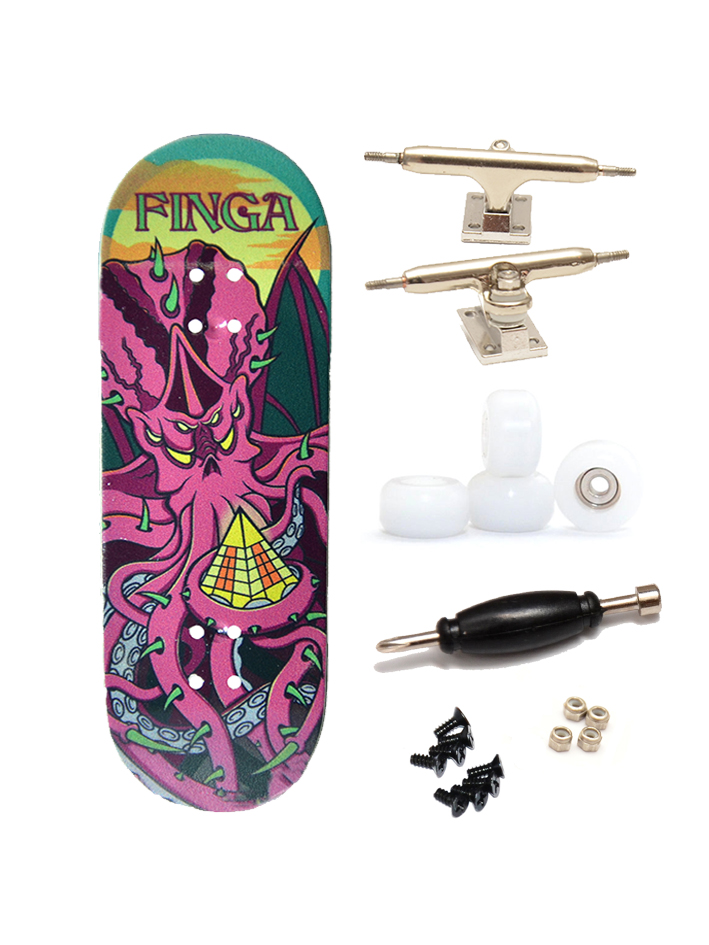 Kompletní fingerboard pro pokročilé jezdce s deskou z edice Design v šířce 33mm za zvýhodněnou cenu! Poloprofesionální jedno osičkové trucky obsahují teflonové gumičky s možností naklápění trucků, pojistné matičky proti samovolnému povolování a ložisková kolečka pro hladkou jízdu jsou samozřejmostí.