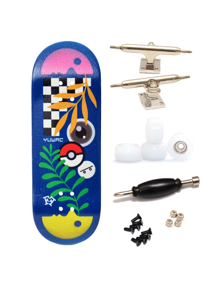 Kompletní fingerboard pro pokročilé jezdce s deskou z edice Design v šířce 33mm za zvýhodněnou cenu! Poloprofesionální jedno osičkové trucky obsahují teflonové gumičky s možností naklápění trucků, pojistné matičky proti samovolnému povolování a ložisková kolečka pro hladkou jízdu jsou samozřejmostí.