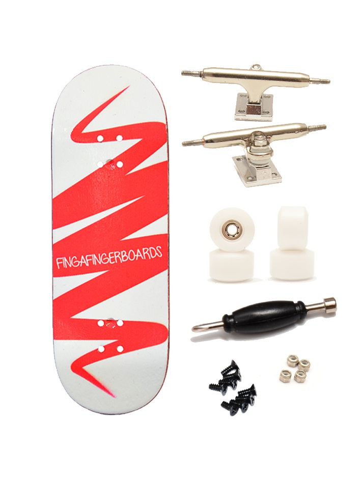 Komplet se skládá z klasické Finga SLIM desky s neotřelou grafikou, která se časem při slidování odírá jako skate. Poloprofesionální jedno osičkové trucky Solid Axle obsahují profesionální měkké gumičky s možností naklápění trucků a prodlouženou životností, pojistné matičky zamezují jejich samovolnému povolování a profesionální ložisková kolečka R-wheels z urethanu, která si okamžitě zamilujete. Tahle kombinace je skvělou variantou pro zkušené jezdce, kteří si chtějí dopřát profesionálním produkt za rozumné peníze.